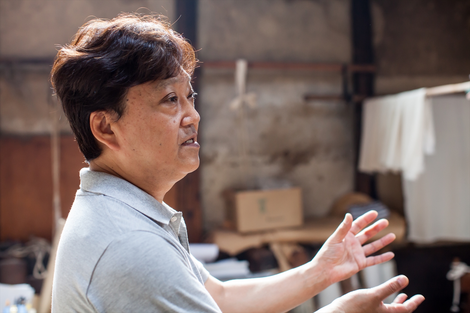 私も初めはサラリーマンをしてたんです。家業としてこの仕事をずっと見てたので、いずれ継ぐことになるんかなとは思ってました。昭和の終わりから平成元年頃に家業に戻ってきたんです。だから私が3代目で私は張り屋を継いで今37年目です。