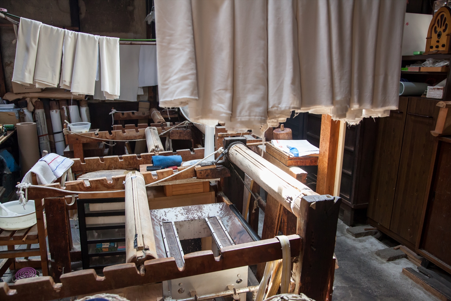 手機は織りながら糊をしていくけれど、だんだん機械織りが増えてきて、織れたものに糊を塗るという作業を効率よくするために「張り屋」が増えてきたんかな。大正末期か昭和初期にはここで仕事をしていたそうです。