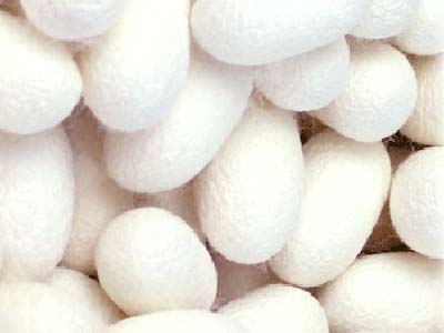お蚕さんが吐く「フィブロイン」という蛋白質と、それをくっつける「セリシン」という蛋白質で作られる繭。