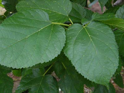 お蚕さんは「桑の葉」を食べます。桑の葉は裏がざらざらしており、葉のふちが少しギザギザしています。