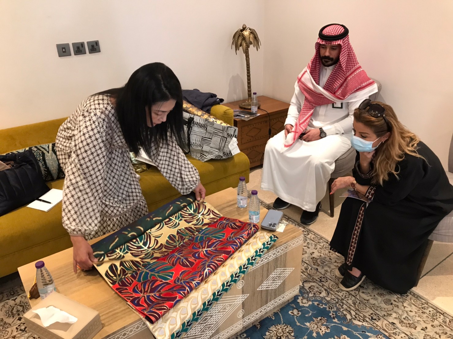 多くの生地専門店、ファッションデザイナー、インテリアデザイナー、現地の個人宅などを訪問し、サウジアラビア政府からご紹介いただいたり、日本から自分でアポを取ったり、現地で急遽訪問が決まったりと、多くの方々に出会いました。