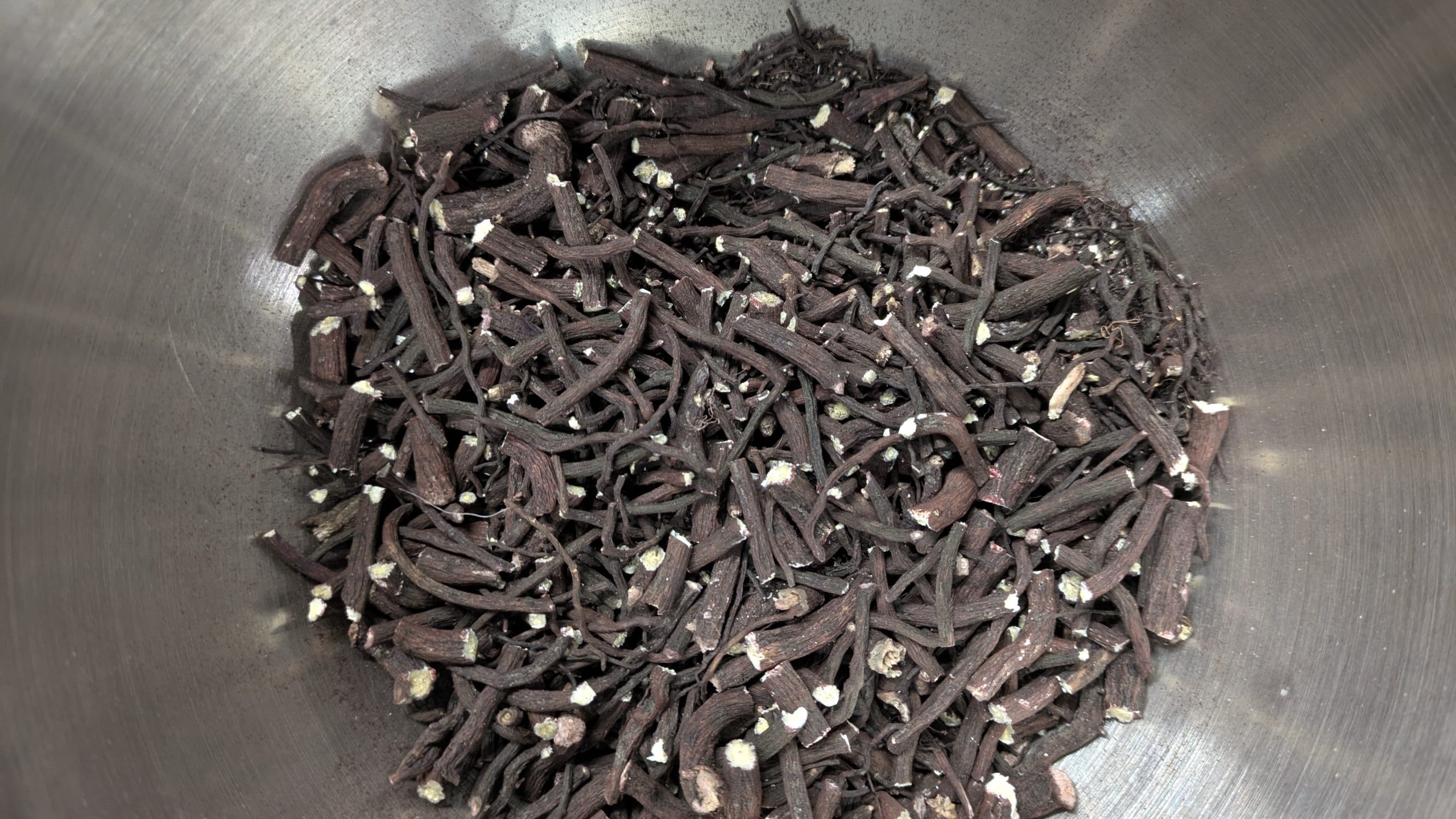 今回の「羽重ね紋様」は、紫根(日本ムラサキ)から色素を抽出し、糸を染め、その糸で織り上げています。色素の抽出は当社で行っています。日本産紫根は希少なため、抽出工程には細心の注意を要します。