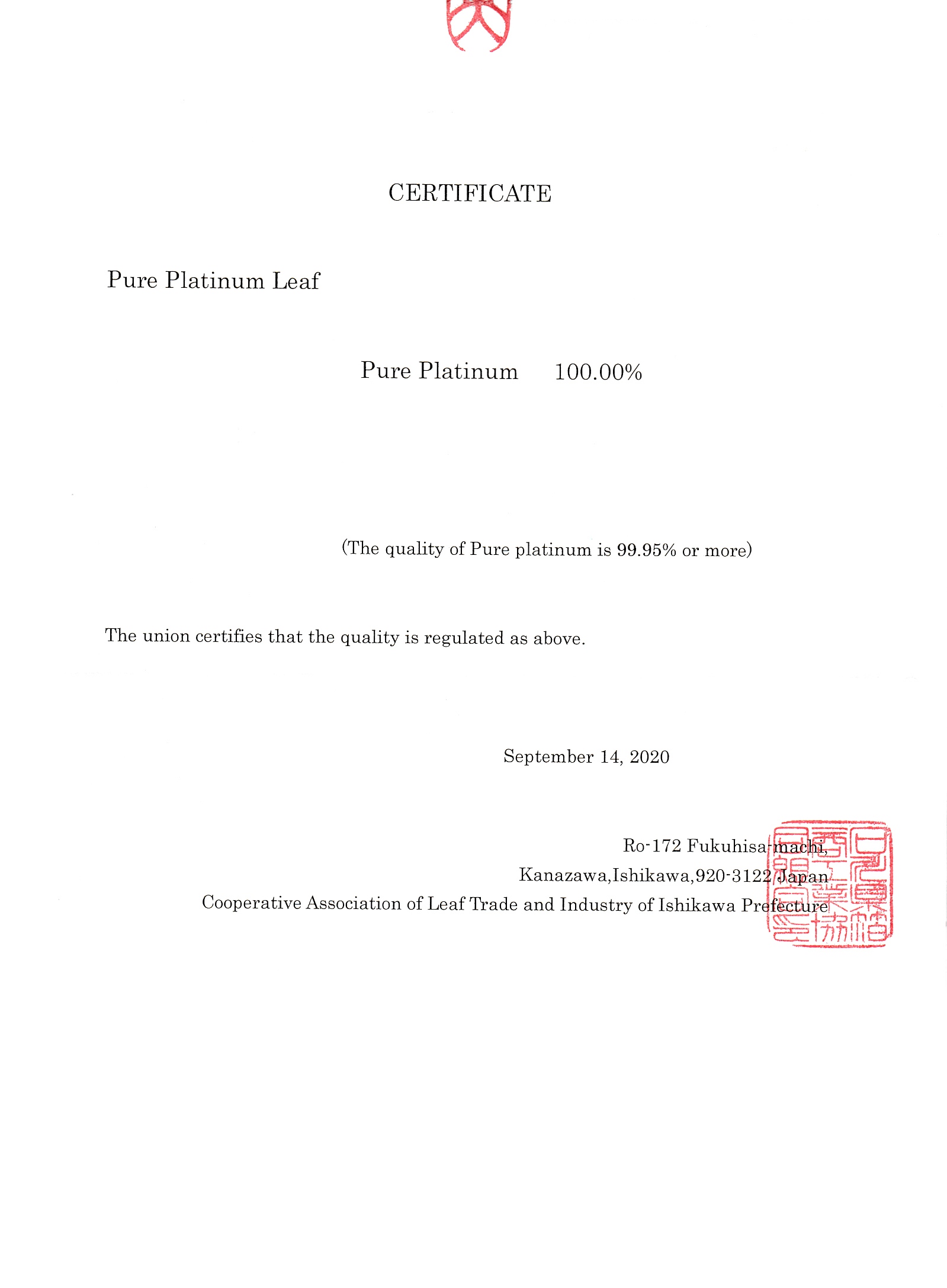 本作に使用したプラチナ箔は、純度100%の本プラチナです。