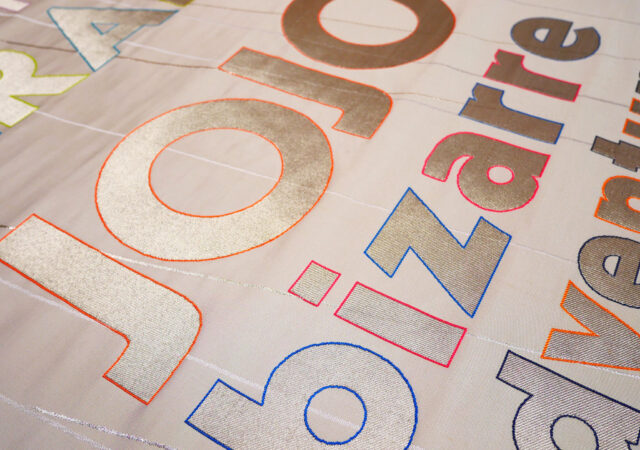 Kyoto’s Nishijin is a town of textiles. Within Nishijin, the technique known as “hikibaku” is especially rare. We collaborated with the young manga creator unit to create a work titled “Hyuran.” woven with hikibaku, and crafted it into a tapestry.