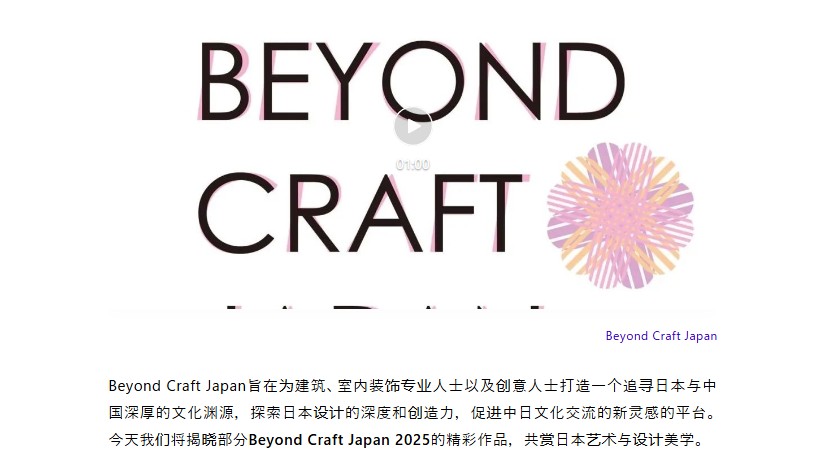 Beyond Craft Japan旨在为建筑、室内装饰专业人士以及创意人士打造一个追寻日本与中国深厚的文化渊源,探索日本设计的深度和创造力,促进中日文化交流的新灵感的平台。今天我们将揭晓部分Beyond Craft Japan 2025的精彩作品,共赏日本艺术与设计美学。