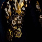 • 金彩友禅:金・銀の箔や本貝螺鈿等を用いた豪華な装飾。金くくりや押し箔、切箔、摺箔、砂子などの繊細な技術で京友禅ならではの美しさを表現。ヨーロッパ王室・有名アーティストなどへ提供もしている職人の手によるもの。