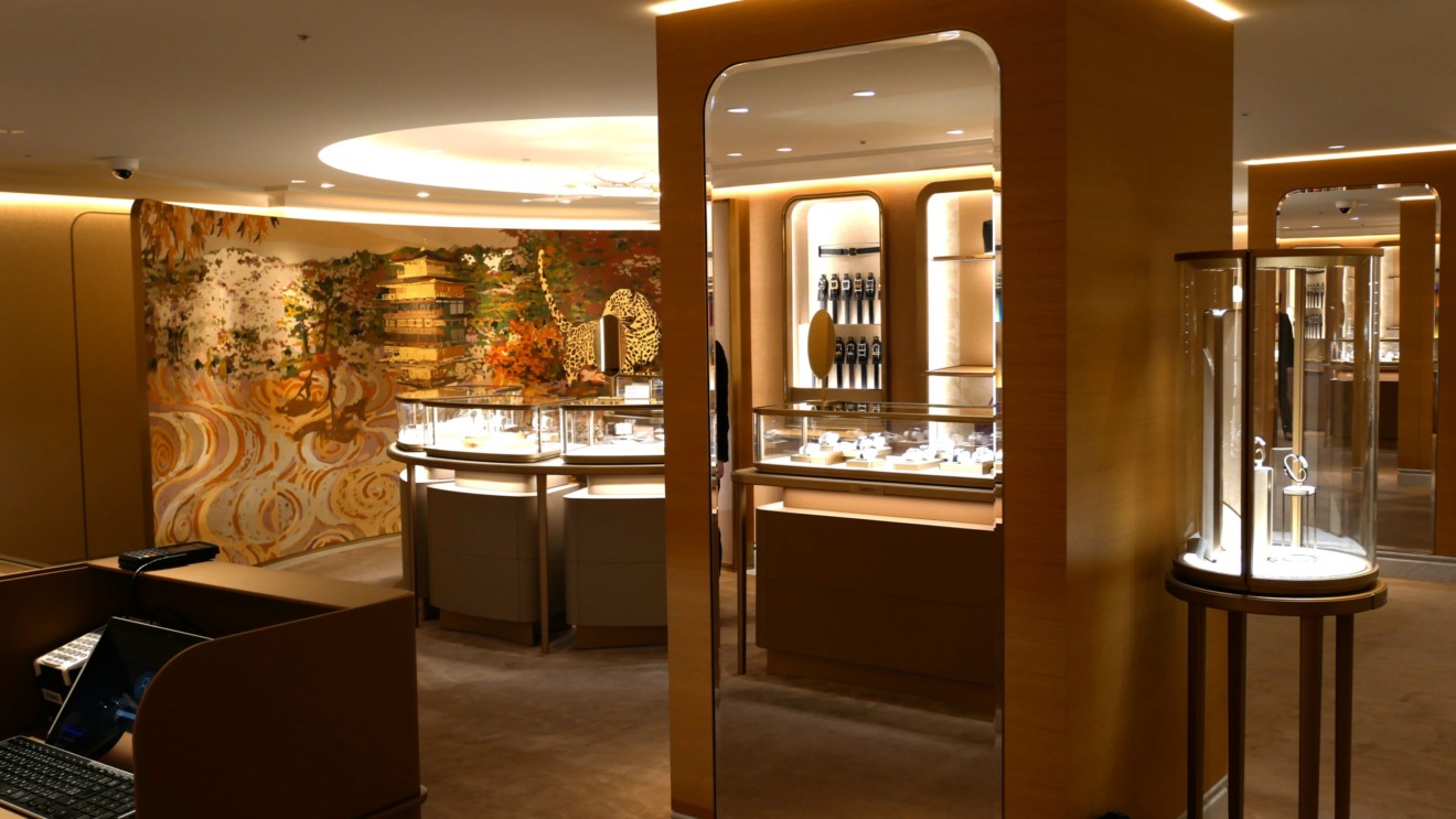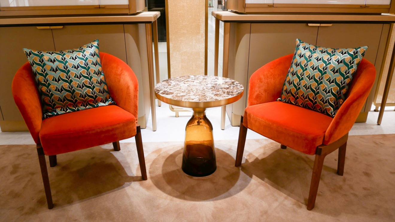 西陣織金襴のクッションを宝飾店ブティックへ
