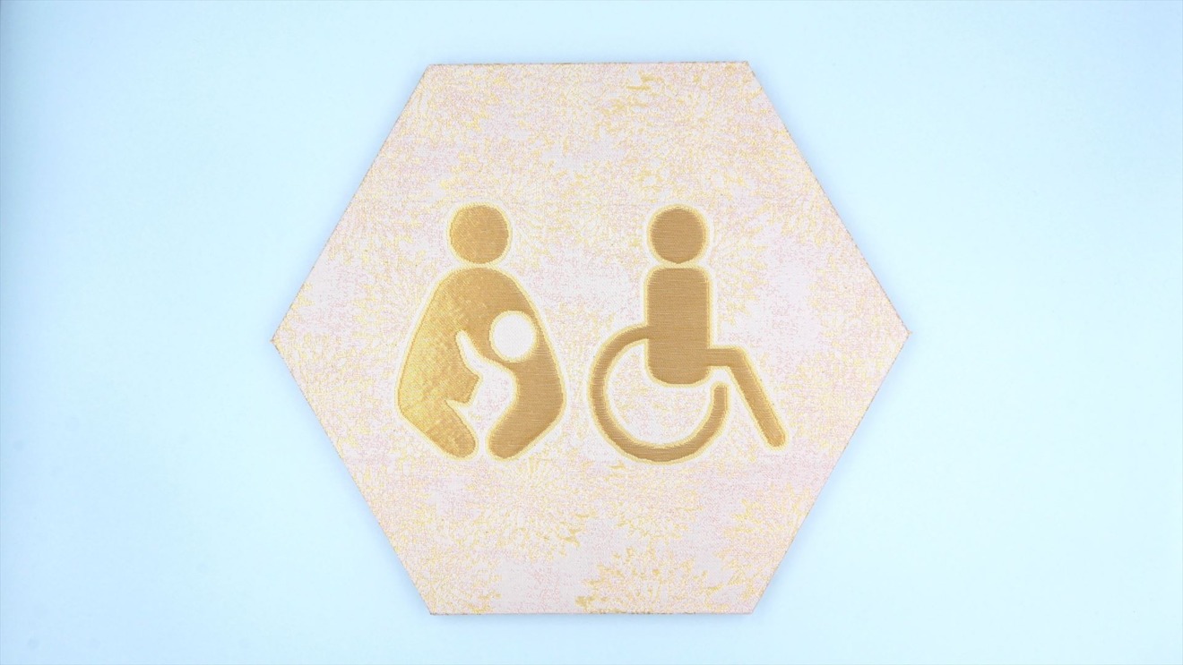 • Pictograms and other information signs are designed in Nishijin brocade.