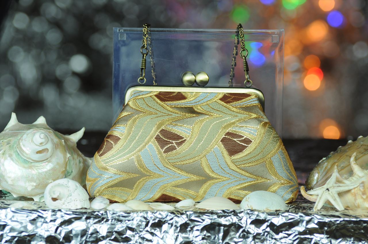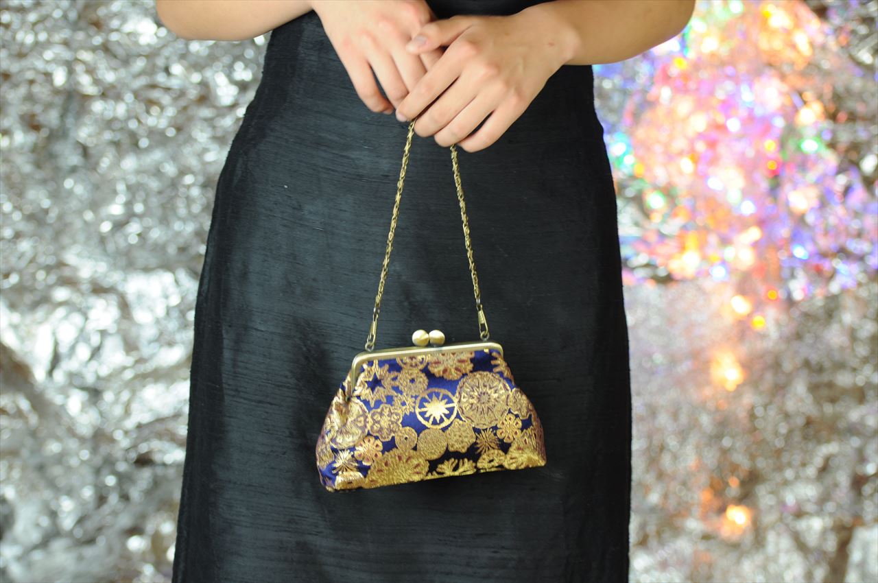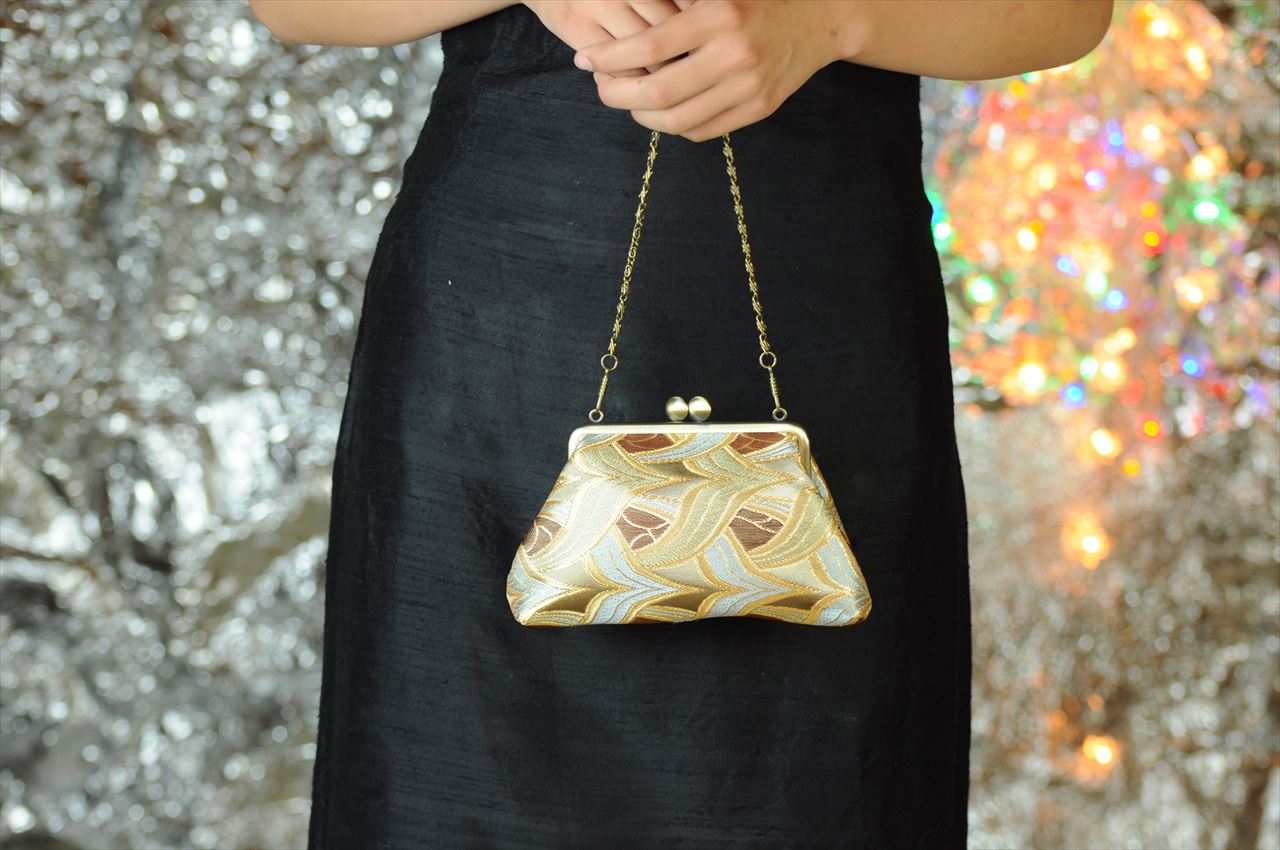 Nishijin kinran brocade kiss-lock pouch