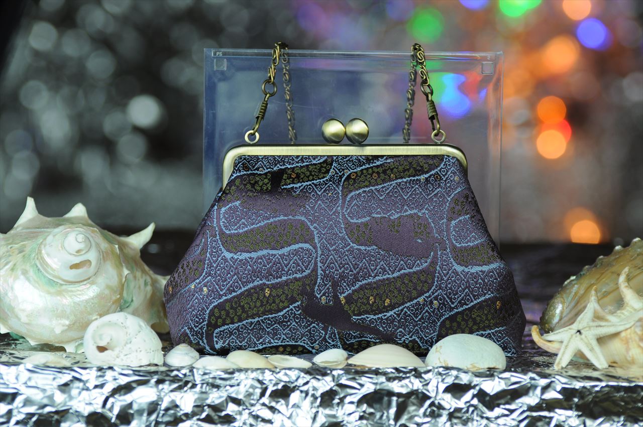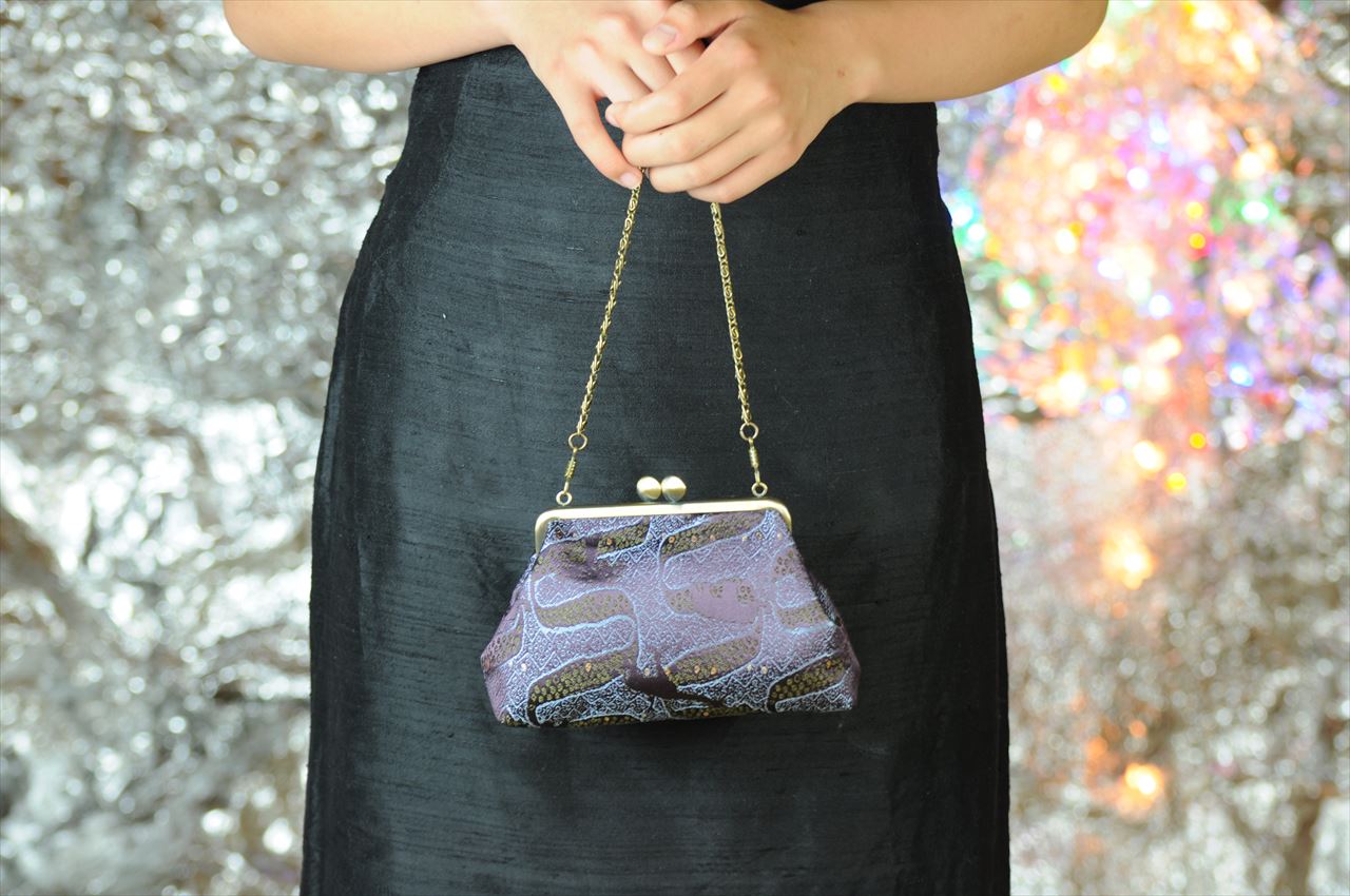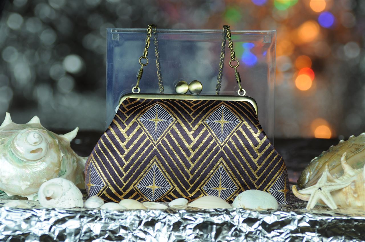 Nishijin kinran brocade kiss-lock pouch