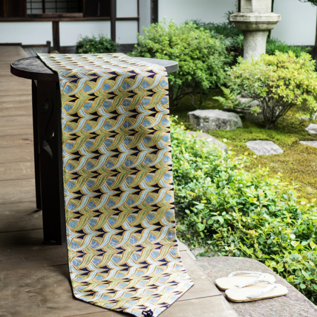 Nishijin kinran brocade with HIKIBAKU pearl powder and silver foil Company logo signboard