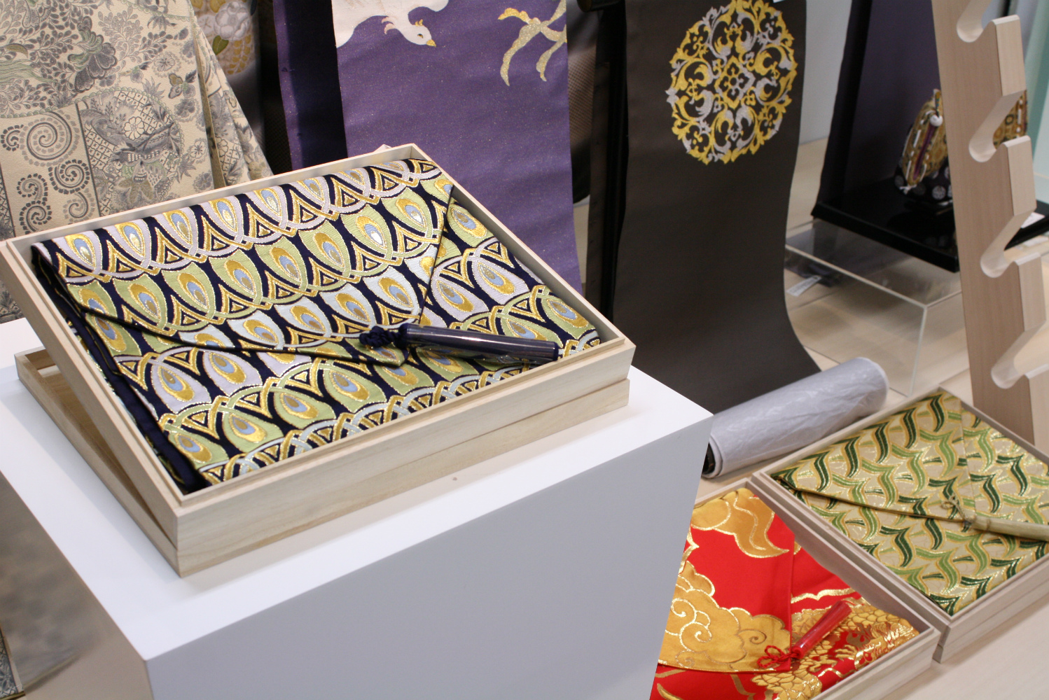 全国各地の伝統的工芸品が一堂に集まる、日本唯一のギャラリー&ショップということで、弊社のテーブルランナーも3点展示しております。実際に手に取ってその質感や美しさを感じていただくためにも、ぜひ青山一丁目まで足をお運びください。