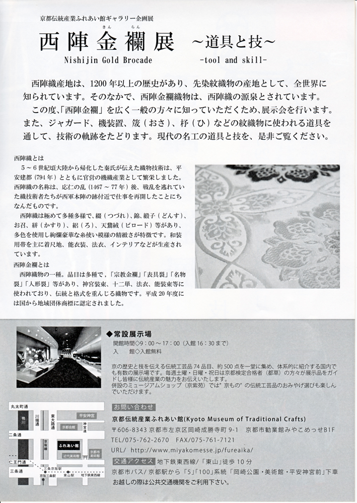 明日8月29日金曜日から京都岡崎のみやこメッセの「京都伝統産業ふれあい館ギャラリー」にて「西陣金襴展~道具と技~」が開催されます。