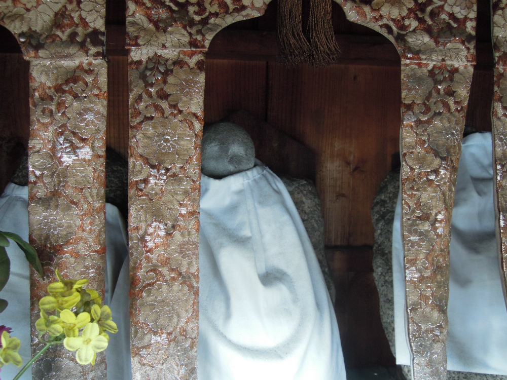 金襴についてお届けしているこのブログ、お地蔵さんと金襴の組み合わせが多くなっております。お寺の本堂などは「撮影禁止」となっているところが多くて、ご紹介叶わない事が多いのです。フラッシュ使わなかったら撮影させてもらったほうが今の時代色々宣伝にもなるのに・・・と思うのは素人の浅はかさでしょうか。秘すれば花なりですね。