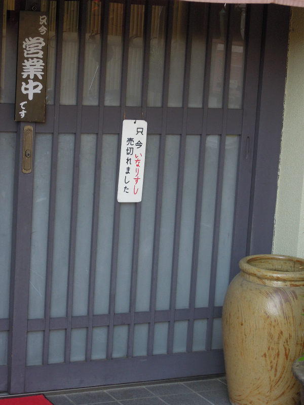 いや、もうピンポイントで「売り切れ」のお札です。「ただ今いなりずし売り切れました」このようにどんどん下げられていくんですかね?仕込み系のお鮨。「さば鮨品切れ」「柿の葉寿司 売り切れ」とか。