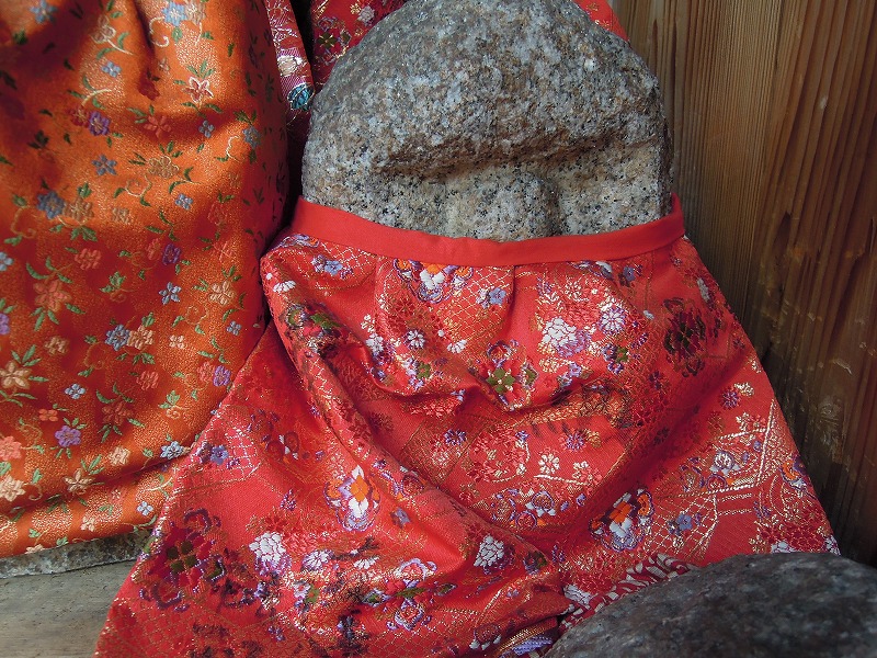 そんな事をつらつらと考えている西陣の織屋の岡本織物、今日のブログは「金襴探し」。金襴屋ですから、金襴で出来た小物とか打敷とか袈裟とか市井で使われている金襴地を写真上でコレクションしていますが、中々無いんですよね。さすが西陣で賑わった町、京都各所のお地蔵さんでは金襴が使われている事が多々あります。