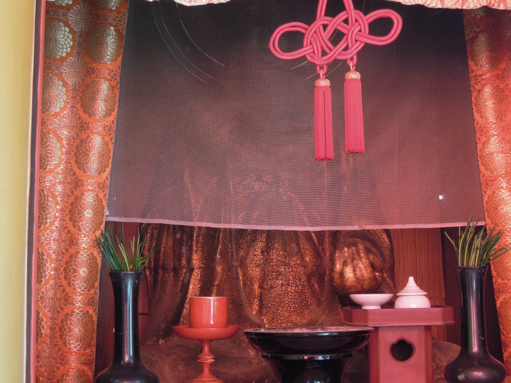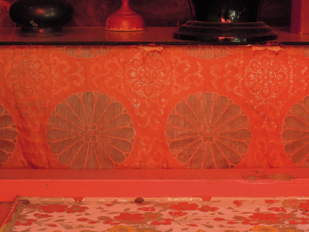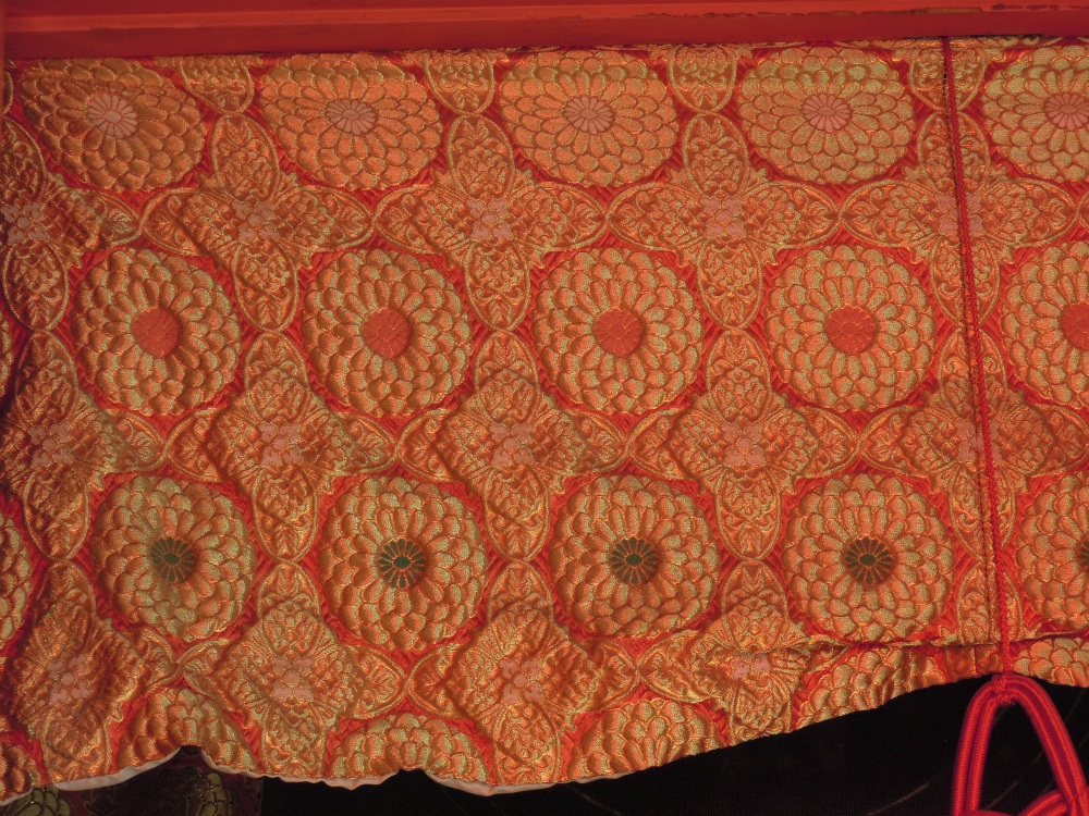薄布が掛かって神秘的なお姿になっています。金襴発見です。