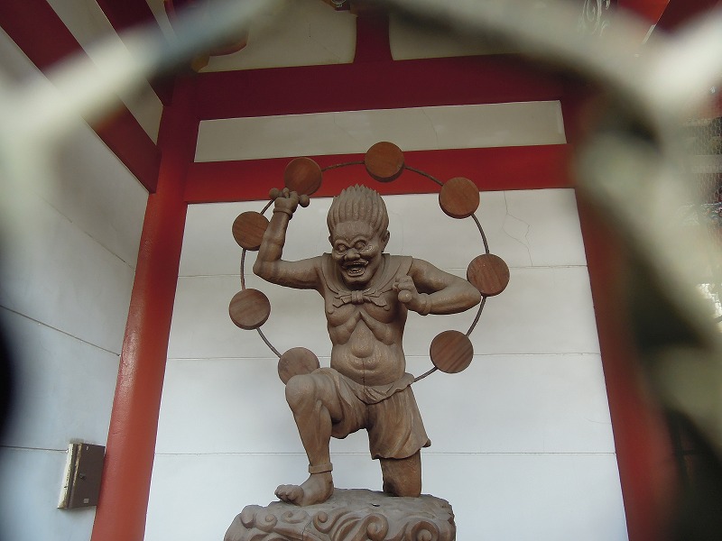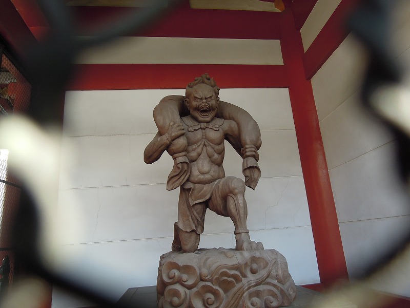 上の仁王さんの裏側の門にかわいい風塵雷神さんがいはりました。風塵雷神さんは仁王さんと比べるとちょっと運動不足かしら。おなかの辺りが。