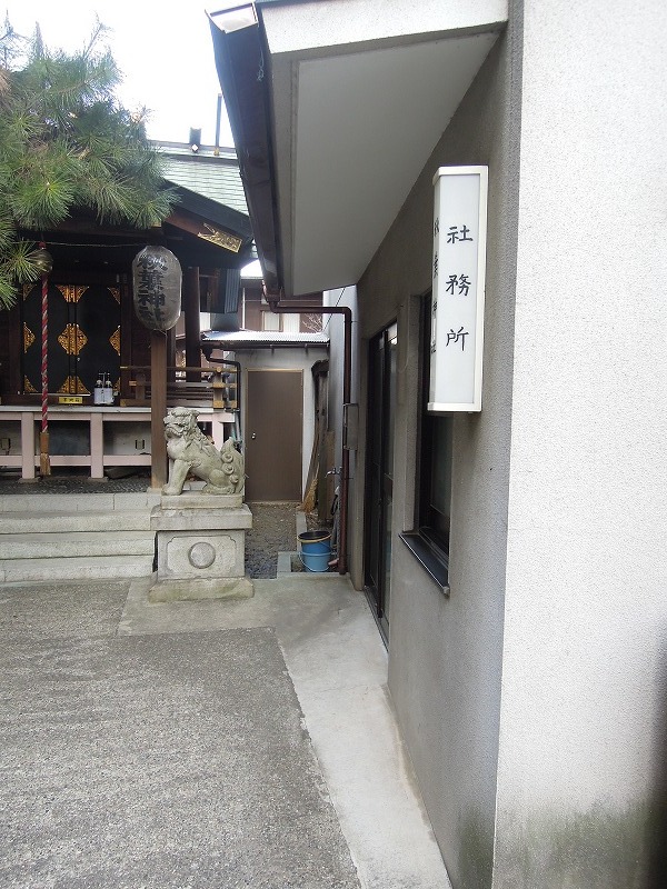 あら、とっても小さな神社なのにちゃんと社務所があります。神主さんいはるのかしら。