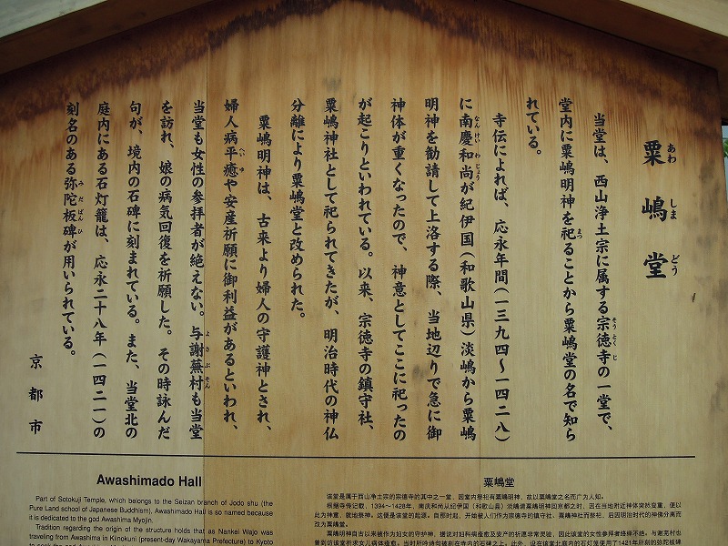 当堂は、西山浄土宗に属する宗徳寺の一堂で、堂内に粟嶋明神を祀ることから粟嶋堂の名で知られている。