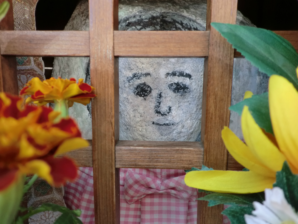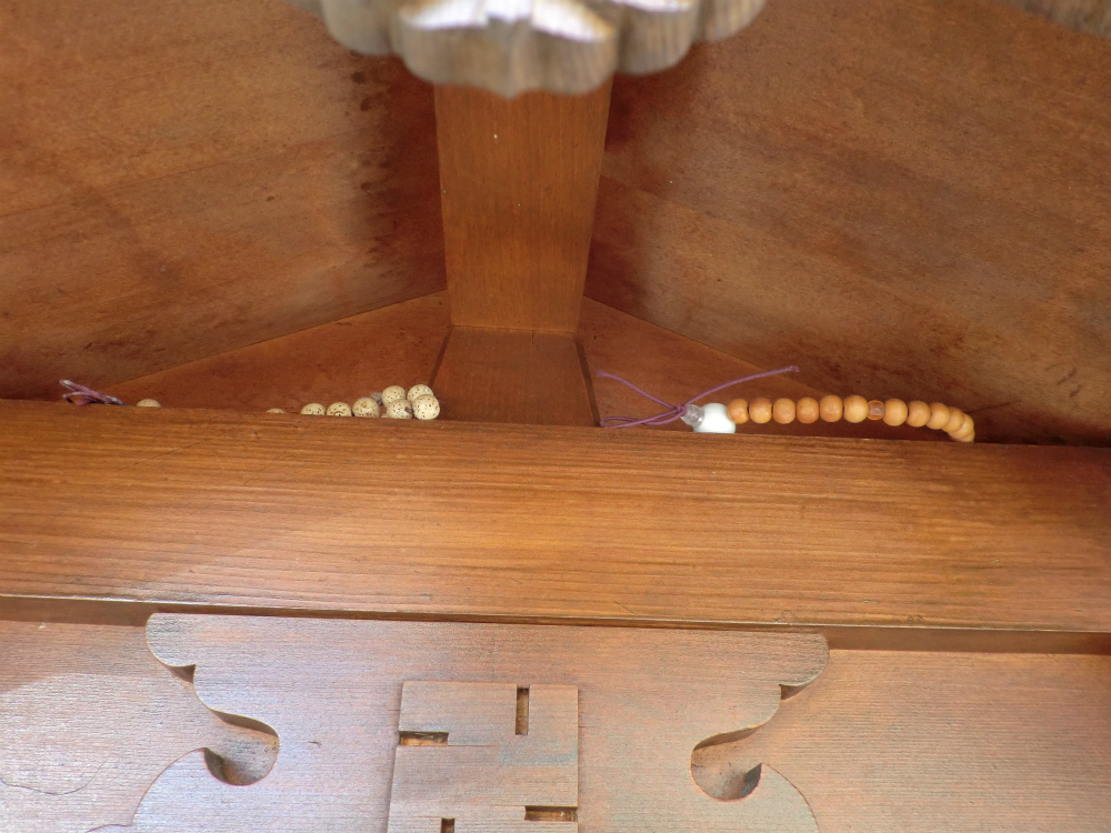 おや。お数珠が保管されているのか、落し物が置いてあるのか・・・。私の推測では、毎朝お掃除をしはる方がここに置いておいて、ちょっと使うんじゃないかしら。