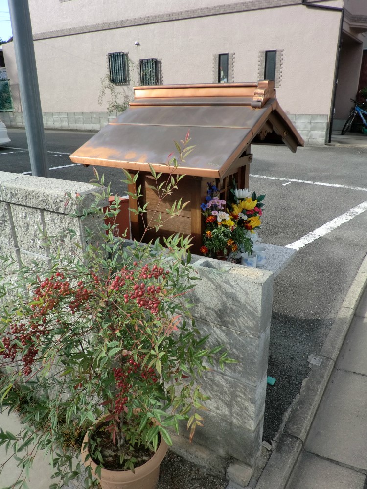 今は普通の住宅街の中に時々、力織機の音がする町です。昔はここにも大きな町家が建ってはったんやろなあ~というような大きな駐車場。銅葺きの屋根が鈍く光っています。