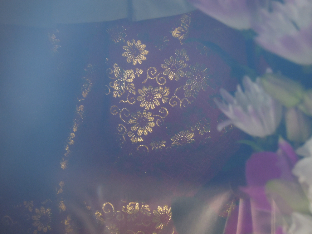 そしてうす曇のガラスの向こうに金襴を発見しました。赤地の小花散し唐草。ああ、金襴を使っていただけて嬉しい♡