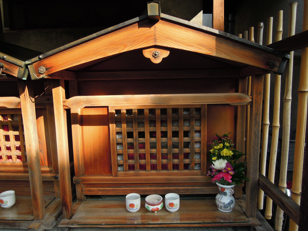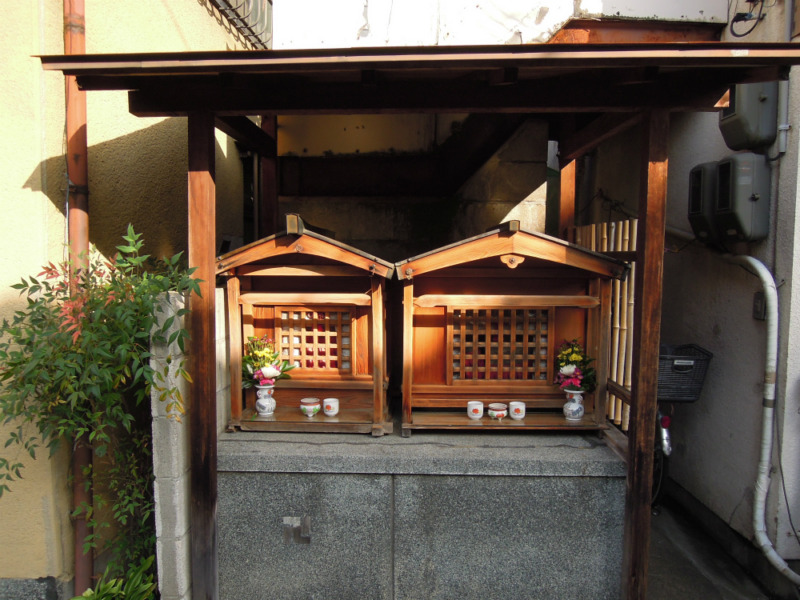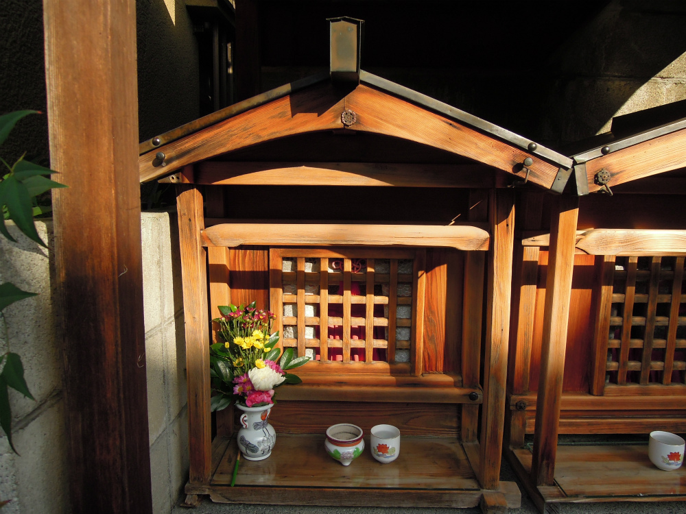 今日は、上京区衣棚通今出川上ル畠山町のお地蔵さんです。二つの祠が祀られています。