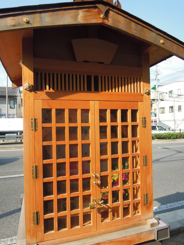 幹線道路のお地蔵さんはやはり内部の汚れ防止のためにかガラス張りが多いです。