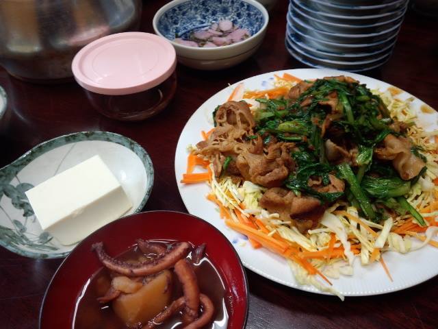 今日の織屋の賄いは豚肉と春菊の生姜焼きでした。