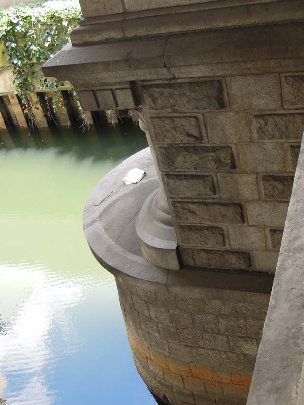 橋脚には石柱を模した飾りが付き、その上部はバルコニーとなっています。