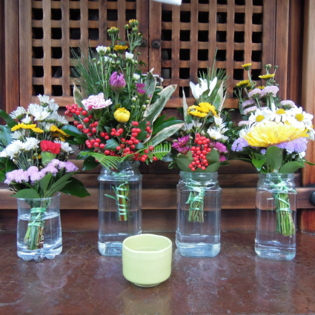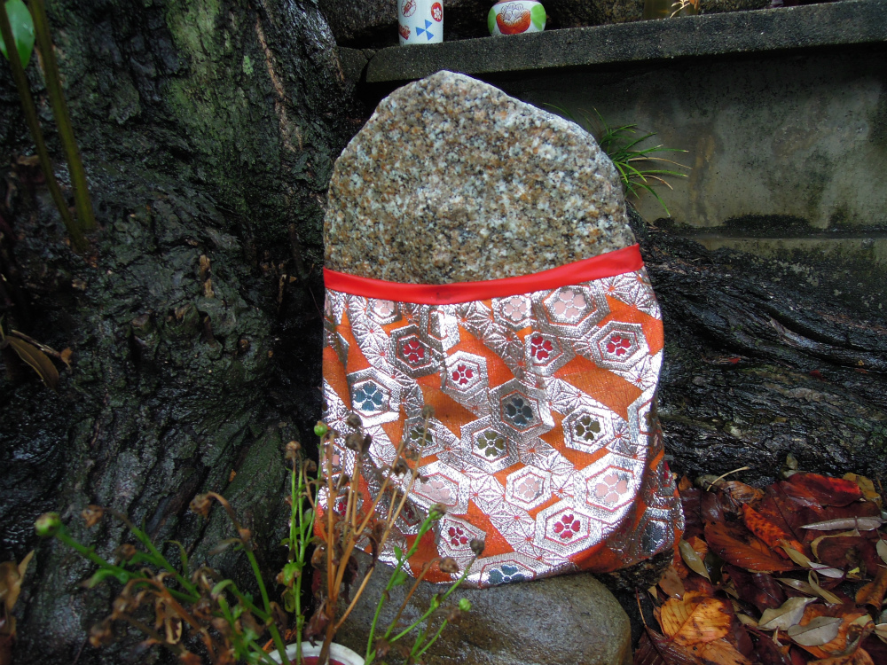 お地蔵さんたちはお揃いの金襴地のおべべを身に纏っています。