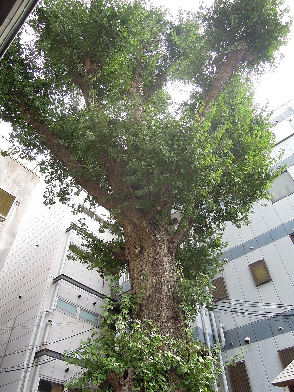 本能寺~金襴を探して ビルの谷間に立派な銀杏もありました。