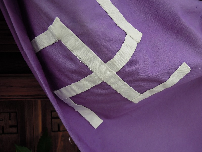 卍から垣間見える金襴地。西陣中真っ只中ですから確実に西陣織だと思います。ここらへんも織屋さんが今でこそ減ってしまいましたが昭和4,50年代は最盛期でガッシャンガッシャン織る音が響いていたはずです。