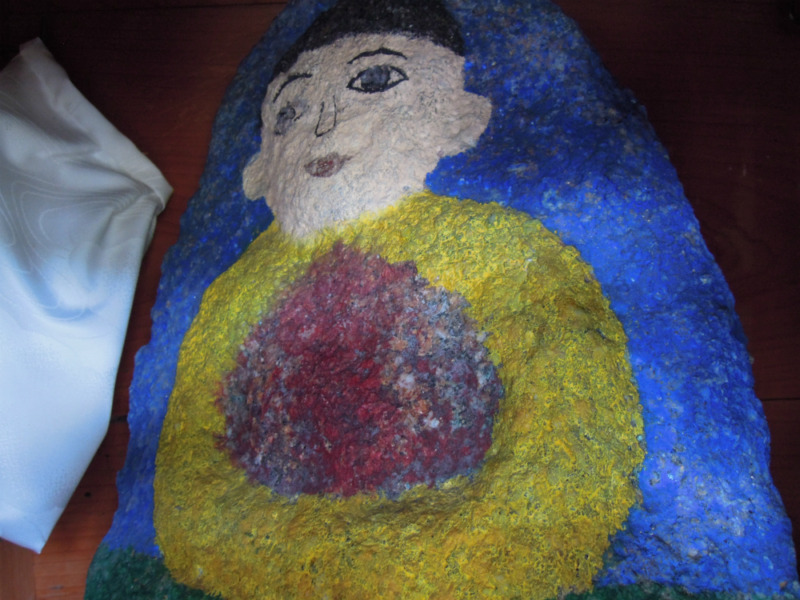 黄色の金襴地が見えております。中のお地蔵さんは色鮮やかに彩られております。可愛らしい。胸に抱く宝珠が「ほとばしる情熱」のように見えませんか?