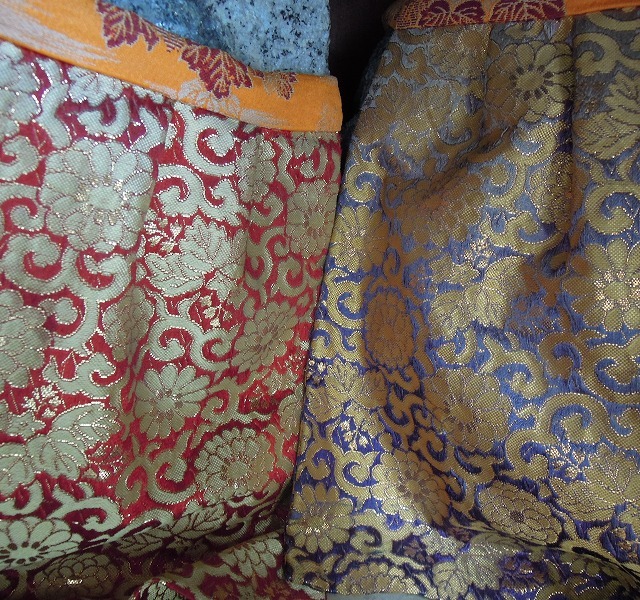 戸帳に金襴を発見です。朱地の唐花。あっさりしていますね。