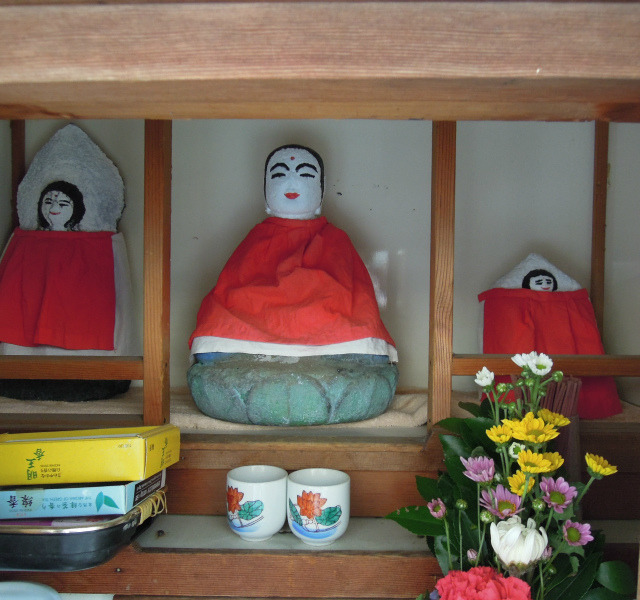 今日の西陣の金襴織屋のブログは「新町通上御霊通り下る大心院町」にご在住のお地蔵さんです。マンションのきわにちんまりと。