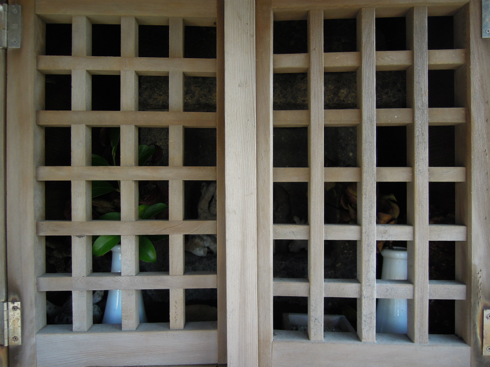 中の祠が素朴でよい感じです。屋根が別付けで乗っかっています。