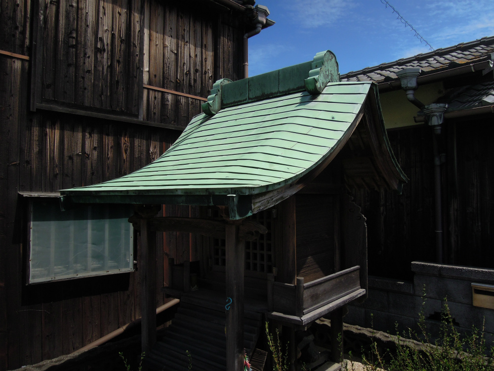 銅葺の屋根も立派な祠。海沿いの祠って塩で洗われているのかやたらと清々しい感じがします。