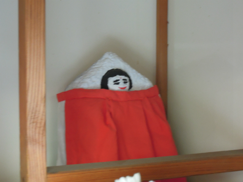 白い背景に赤い綿のおべべ。中々色的にいいですね。