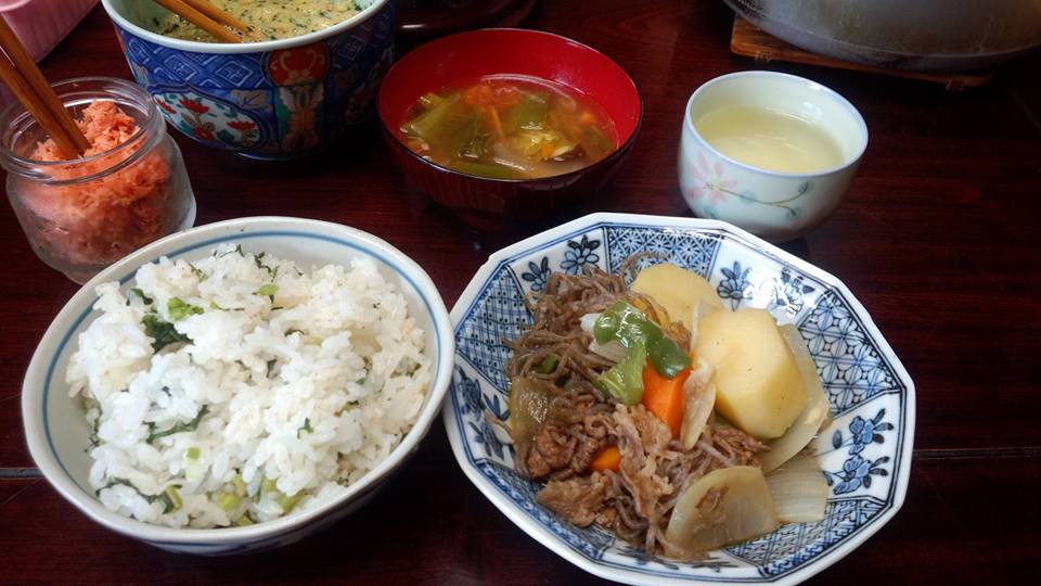 今日の織屋の昼ご飯は、菜飯と肉じゃがでございました。