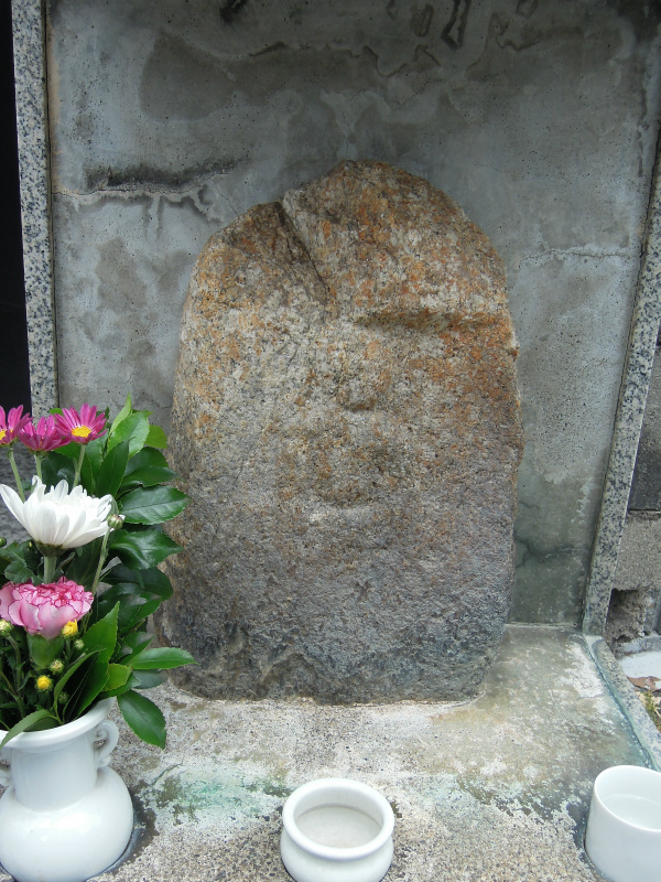 お地蔵さんは大きめの石に座像が彫られています。お地蔵さん?というかたぶんお地蔵さんなのでしょうが立膝の不動明王を思い浮かべてしまいました。ね、右手に大きな剣を抱えてはりませんか?