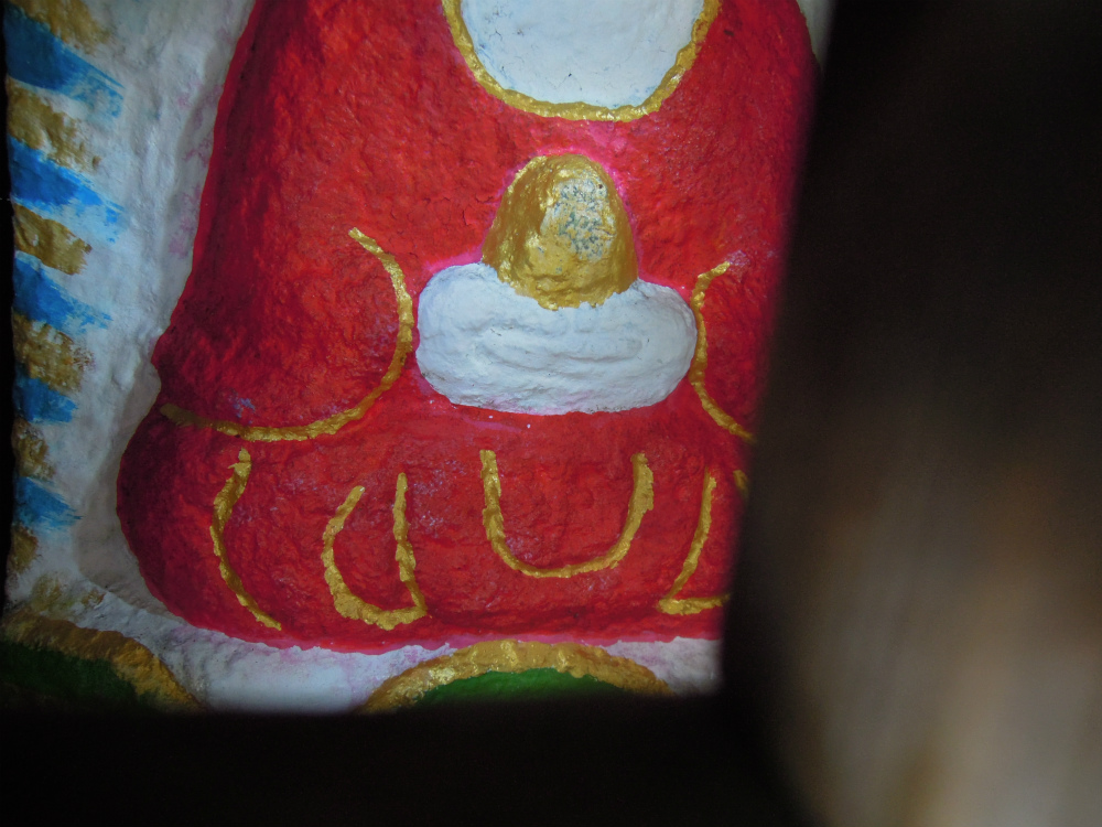 中のお地蔵さんは、瞑想中。手に持つ宝珠の光り輝く具合がいいですね。後光もぺかぺか☆