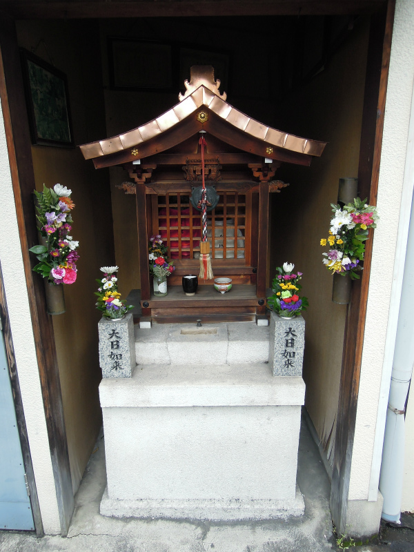 民家と民家の間に。ちゃんと居場所を作ってもらえています。「大日如来」様。