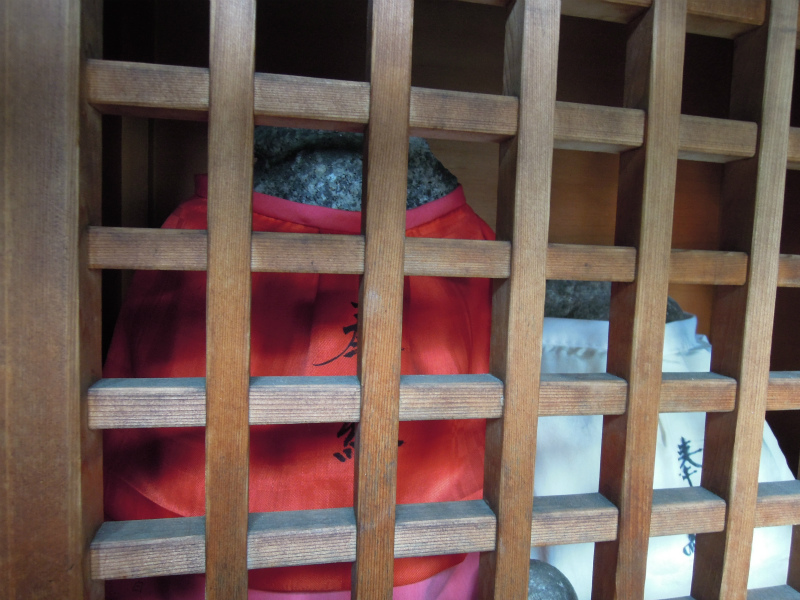 お地蔵さんのおべべは紅白です。寄り添うよう。