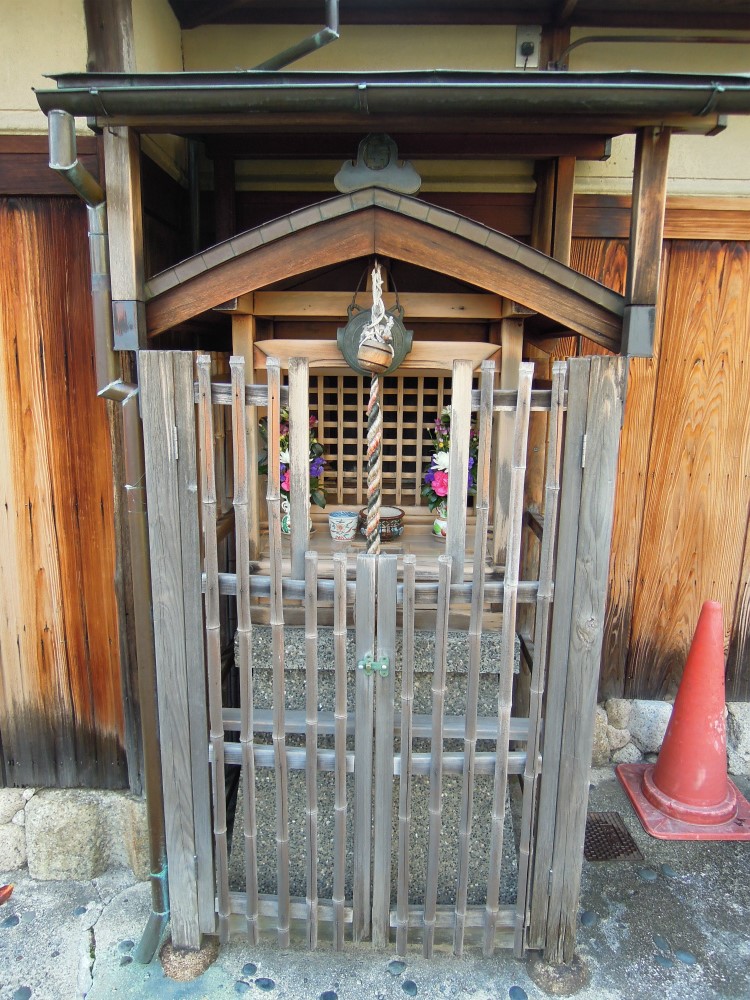 しっとりした板塀にすっぽりはまるようにしてお地蔵さんの立派な祠があります。落ち着いていますね。さすが古都、上京区です。