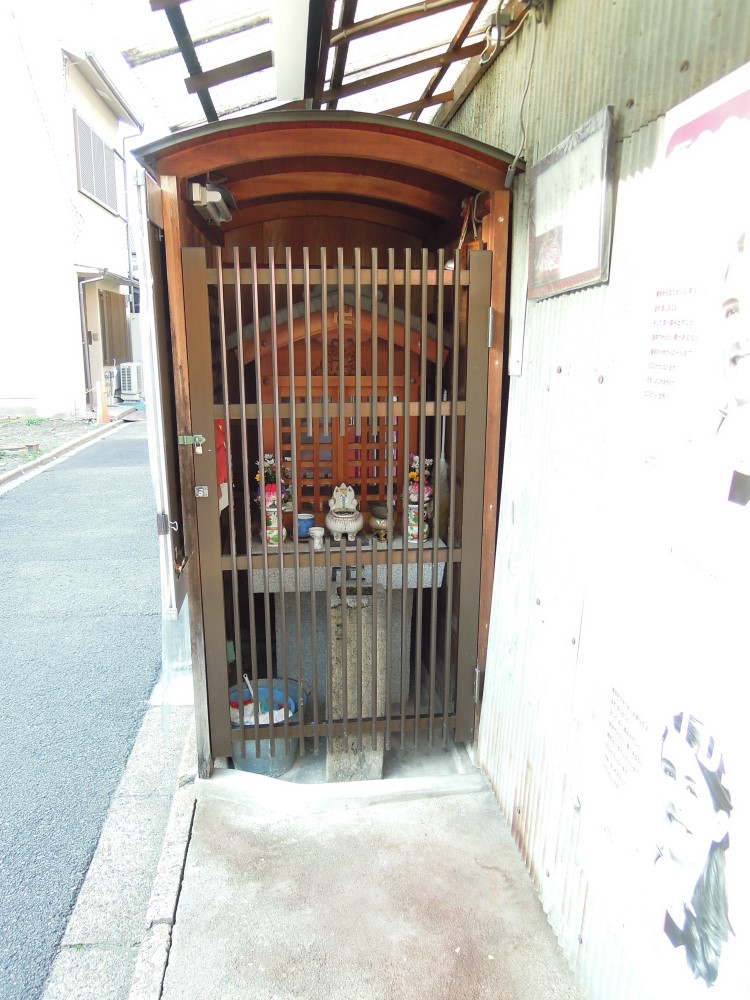 祠の向うにお地蔵さんがいはります。京都観光の際は有名な神社仏閣も素敵ですが町町で信仰されている素朴なお地蔵さんにもお目をお留め頂けたら京都市民としてうれしゅうございます。