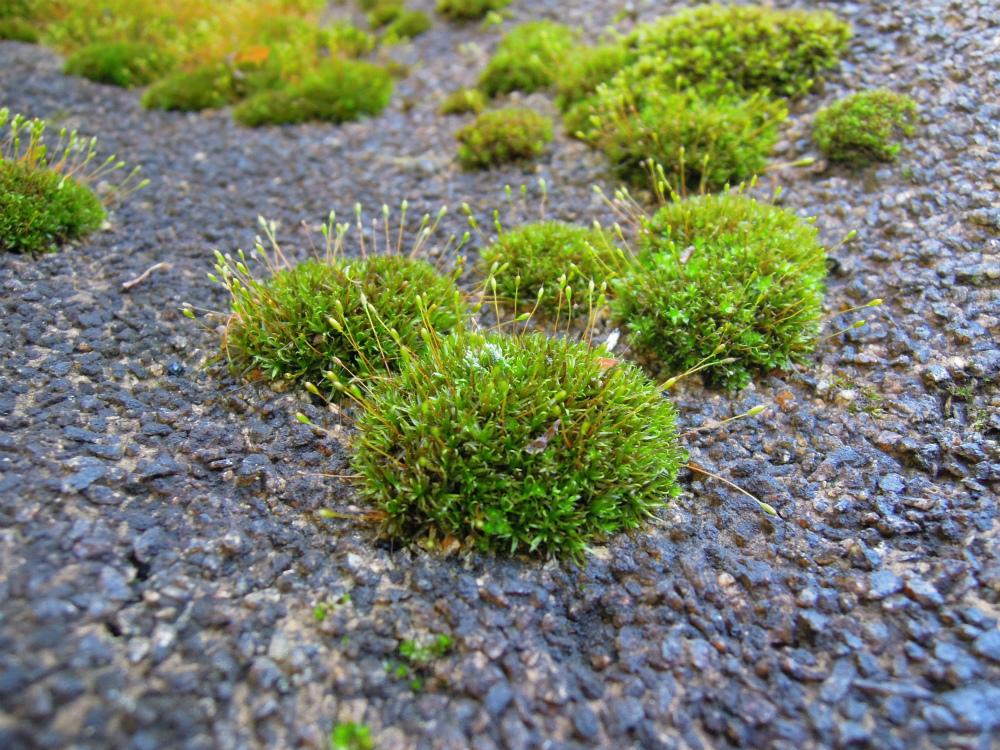 傾斜の激しいところに杉苔のコロニーは少なく、雨水が溜まりがちなところに杉苔も多いです。
