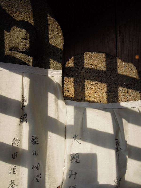 ざっくり石タイプとちゃんと彫刻タイプが入り混じってはります。