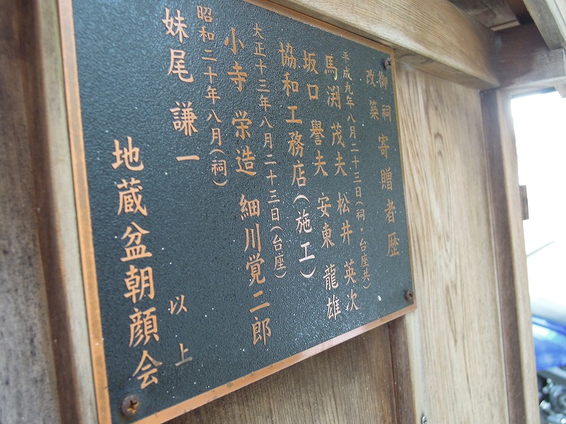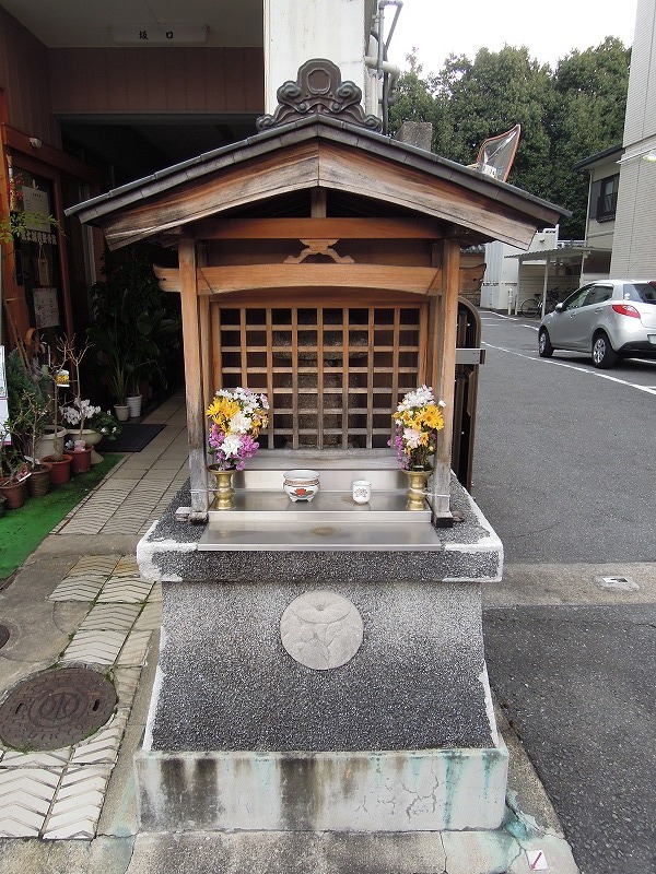 こちらのお地蔵さん、台座は大正13年、祠が昭和20年8月(ものすごい激震の時に・・・)そして平成9年に台座と祠と書いてあります。修繕かしら。そしてこちらの町内?とにかく「朝顔会」という方々がお地蔵さんのお守りをしてはるらしいですね。それで、「朝顔紋」なんですね。粋やわ~。